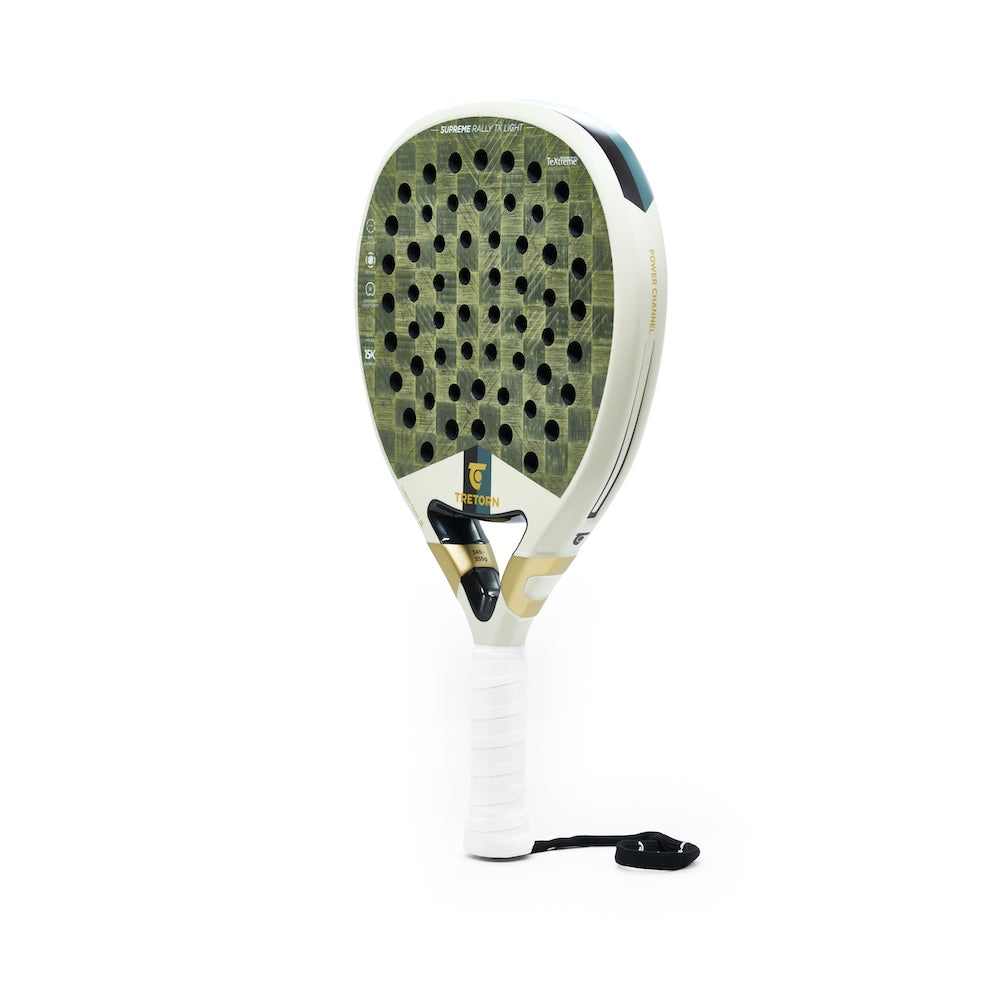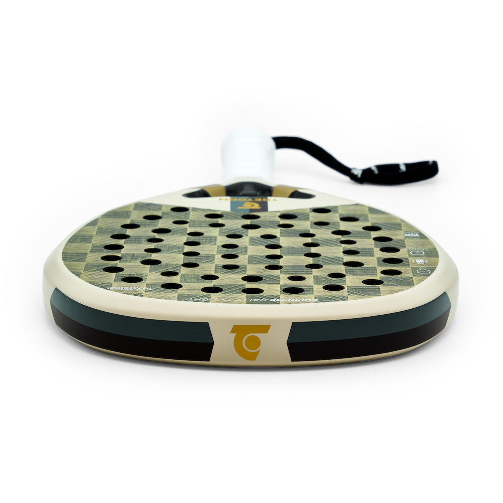 Elevate your padel game to new heights with the exceptional padel racket SUPREME RALLY TX LIGHT. The racket is made for players seeking finesse and agility in a racket, with maximum control and reduced weight for effortless maneuverability. The racket is equipped with a 15K carbon fiber layer from Swedish TeXtreme®, which is a thinner, stronger, and more durable surface layer that provides a quicker response compared to traditional carbon fiber constructions. Experience a new level of speed and sensation in every shot, as TeXtreme® technology is unique. Our soft core, EVA COMFORT, offers a mix of innovation and high comfort. By combining TeXtreme® technology with the EVA COMFORT core, a larger centered sweetspot is achieved, ensuring that each shot resonates with controlled power and finesse. The reduced weight gives you the ability to effortlessly maneuver the racket. The racket is also equipped with a DUAL-hole pattern that optimizes the racket's contact points, enhancing the ability for controlled shots even when hitting outside the racket's sweetspot. The result? Constant control and precision that allow you to decide the pace of the game. Additionally, the racket features a multi-directional 3D decal, strategically designed to enhance your spin for all types of shots. Elevate your performance with SUPREME RALLY TX LIGHT – where innovation, precision, and seamless control meet. This racket is your key to unlocking a new level of mastery on the court, regardless of your skill level.