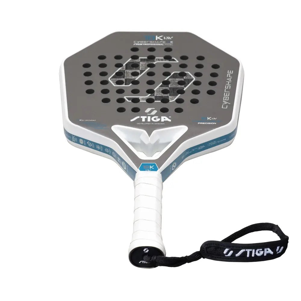 Cybershape 18K LW – lav balance og generøst sweet spot for god kontrol Leder du efter en lettere padelketcher, der stadig giver dig total kontrol? Så bør du se nærmere på Cybershape 18K LW. Denne lettere tvilling til Cybershape 18K giver dig den samme uovertrufne følelse af kontrol ved kontaktpunktet og et blødere boldtræf, men vejer mindre og er lettere at manøvrere. Det lave balancepunkt giver dig en dejlig følelse af kontrol i din arm, og det forstærkede kulfiberlag og den eksklusive sølvbehandling binder stoffet sammen og skaber en slagflade, der giver dig mulighed for at spille med finesse uden at skulle gå på kompromis med hastighed eller præcision. I samarbejde med KTH (Royal Institute of Technology) er der udført vindtunneltests, hvor Cybershape-ketcheren konsekvent viste op til 12% lavere luftmodstand sammenlignet med traditionelle ketchere. Den giver en helt ny spilleoplevelse med mere dynamik og mobilitet, en ketcher, der er designet til at skære mere frit gennem luften. Cybershape 18K LW er velegnet til alle spillere, men især til dem, der ønsker en lettere ketcher, der ikke belaster albue og håndled så meget, og som har en stor, tilgivende sweetspot. Et fremragende valg for erfarne yngre spillere, kvindelige eller herrespillere, der leder efter en lettere ketcher med lav balance. Den unikke Cybershape-form bidrager til en generøs og bedre optimeret slagflade, der giver dig en unik fordel på banen. Takket være den sekskantede form er sweetspotten hele 20% større og sidder også højere end på traditionelle padelketchere. Sweetspotten er simpelthen svær at overse. Ketsjerens lige linjer flugter også perfekt med banen og gør det lettere at slå bolde tættere på glasset og jorden. Det lange håndtag giver dig et rigtig godt greb og mere fleksibilitet i dit spil. Cybershape 18K LW har en slagfast ramme lavet af 100% kulfiber, det vi kalder 360 Carbon Frame. Dette skaber en holdbar ketcher, der reagerer hurtigt og gør det nemmere for dig at håndtere rigtig hårde slag fra din modstander. For at få maksimal spin i dine slag og gøre det nemmere at kontrollere bolden, har ketcheren en sandet overflade, kaldet Crystal Grip. Det lange håndtag giver dig mere fleksibilitet og har en aftagelig håndledsrem, så du nemt kan skifte den, når den bliver beskidt.