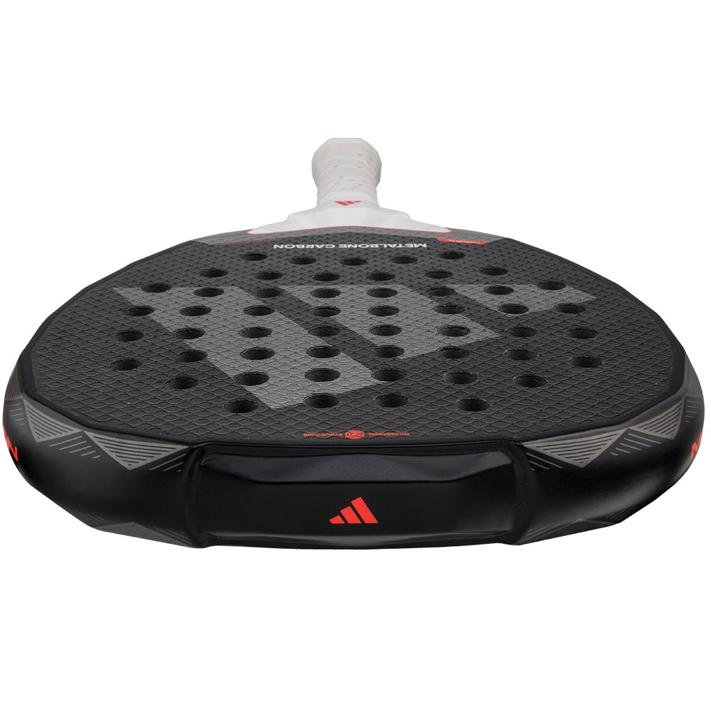 Metalbone Carbon 3.4 er designet til spillere på højeste niveau. Dens adidas-teknologier opfylder de mest krævende behov på banen. Den ottekantede, indvendige rørformede ramme, sammen med Power Extra Grip-håndtaget for øget slaginerti, og det lave polyedriske design af rammen og kernen giver exceptionel kraft. Derudover garanterer Spin Blade Decal-strukturen optimale spinslag. OTTEKANTIG STRUKTUR: Den rørformede kulfiberstruktur med en omhyggeligt designet ottekantet sektion reducerer vridning for mere præcise slag. POWER EXTRA GRIP: Det længere greb øger kraften i slagene. LOW POLY: Det polyedriske design af rammen og kernen i ketcheren giver større stivhed og kraft. SPIN BLADE DECAL: Denne relief hjælper med at forbedre følelsen af kontrol og øge mængden af spin, vi kan give bolden. BLØD YDELSE: EVA-gummi med lav densitet, der giver fremragende boldretur og komfort i spillet. Ketsjere med denne type gummi er identificeret ved den sorte hætte. CARBON 6K: En perfekt kombination af kontrol og kraft, med stor stivhed og holdbarhed. DIAMOND: Meget afbalanceret format, der favoriserer offensive slag. Den nye Metalbone-serie inkluderer nu et nyt Diamond-format. Med mere vægt placeret øverst på ketcheren øges inertien, hvilket giver forbedret kraft i angrebsslag.