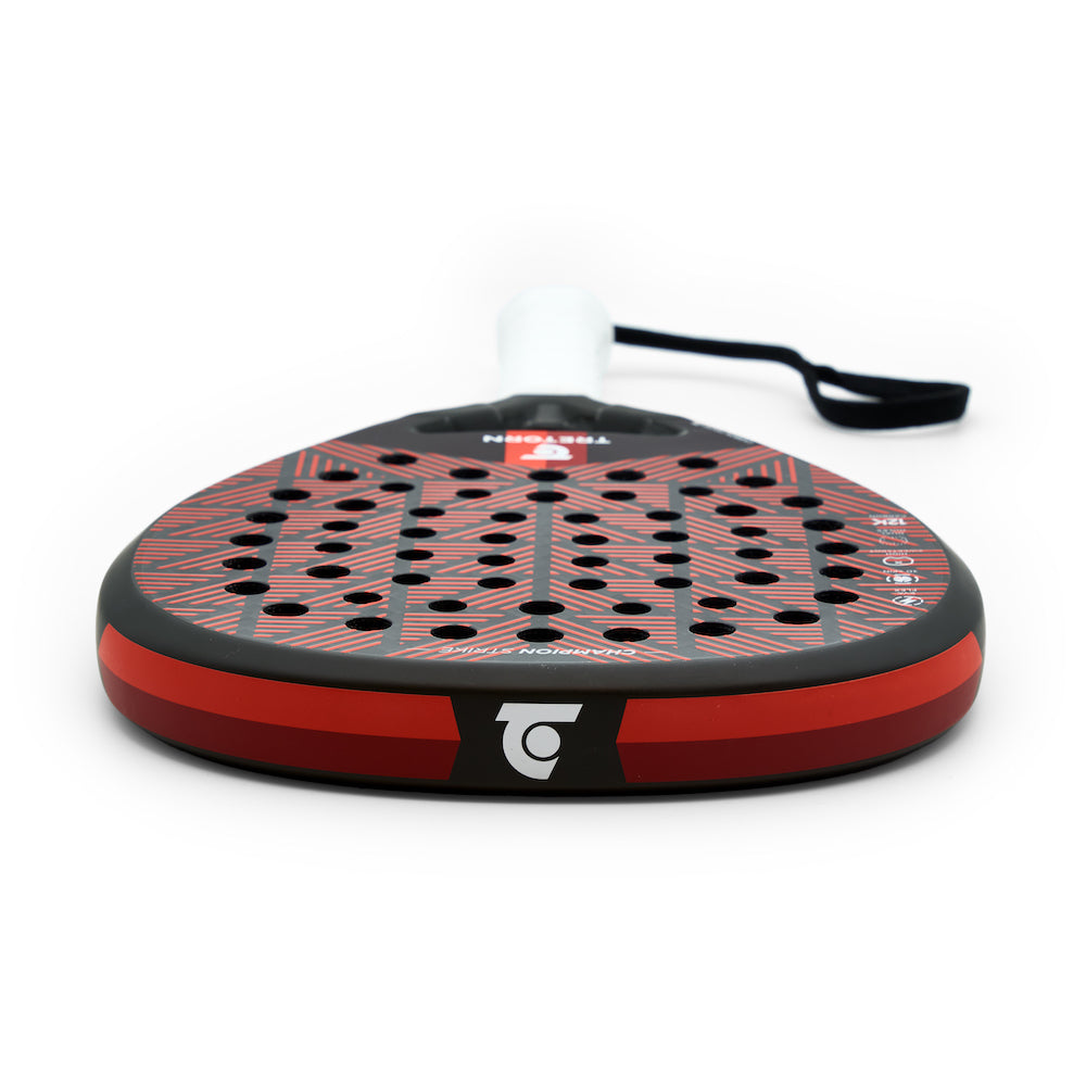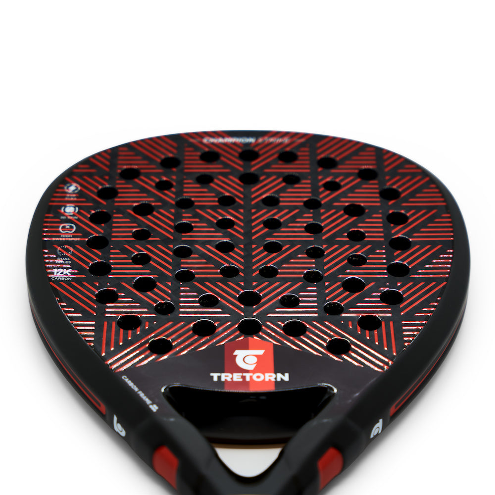 Med en enestående kombinasjon av teknologi og materialer gir denne racketen deg kraften til å dominere og kontrollen for å levere presisjon. La oss dykke inn i de imponerende funksjonene som Champion Strike har å tilby. Champion Strike har et japansk 12K karbonfiberoverflatelag som ikke bare gir deg en imponerende styrke i dine offensive slag, men også en dyp og energi -rik respons. Dette gir deg muligheten til å ta kontroll over spillet og sette ditt preg på hver ball. Sammen med Eva Flex Core får du en enestående blanding av følelse og berøring i spillet. Hvert møte føles presis og responsivt, noe som gir deg muligheten til å spille med små marginer for å opprettholde kontrollen over spillet. Ideell for spillere med en eksepsjonell ballhit. Racketen er også utstyrt med dobbelthullsdesign som optimaliserer racketens kontaktpunkter, noe som forbedrer muligheten for kontrollerte slag selv når du treffer utenfor racketens søtspot. Resultatet? Konstant kraft og presisjon som lar deg bestemme tempoet i spillet. I tillegg kan du maksimere spinnet med vårt multi-retningsbestemte 3D-dekal for å overraske motstanderne dine med variasjon i spillet ditt. Champion Strike gir deg muligheten til å være allsidig og tilpasse din spillestil til hver situasjon.